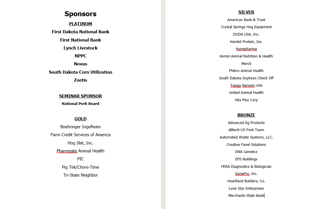 This is an action-packed, informative, two-day event for the South Dakota Pork Industry including:
